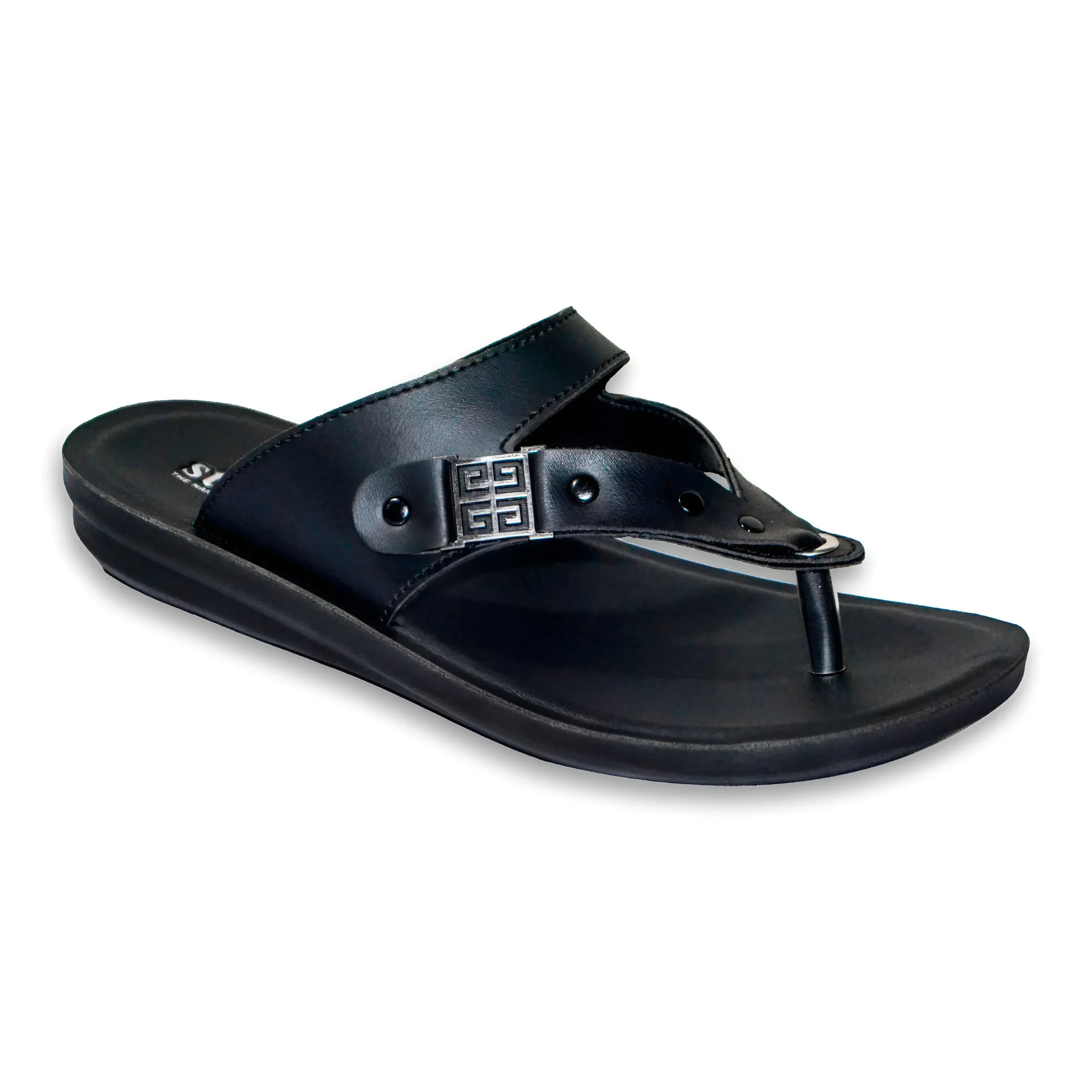 & Free ShippingStylish men’s toe-post sandals designed for a bold and contemporary look. Available in classic black and rich brown options, these sandals feature a broad upper strap with metallic accent detailing for a modern touch. The sturdy toe loop ensures a secure fit, while the smooth inner lining enhances comfort.