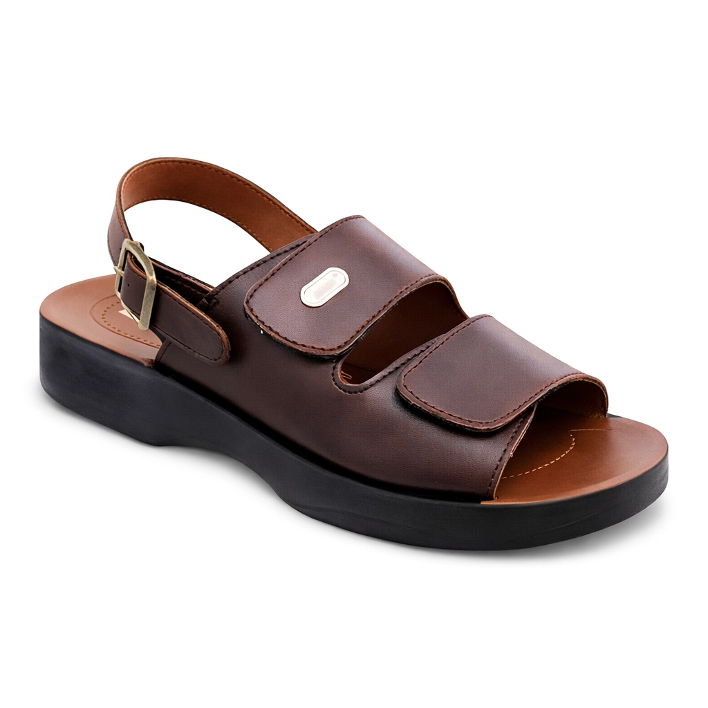 & Free ShippingPremium men’s sandal crafted with smooth leather upper and dual Velcro straps for an adjustable fit. Features a secure back strap with buckle, cushioned footbed, and sturdy sole for all-day comfort and support.