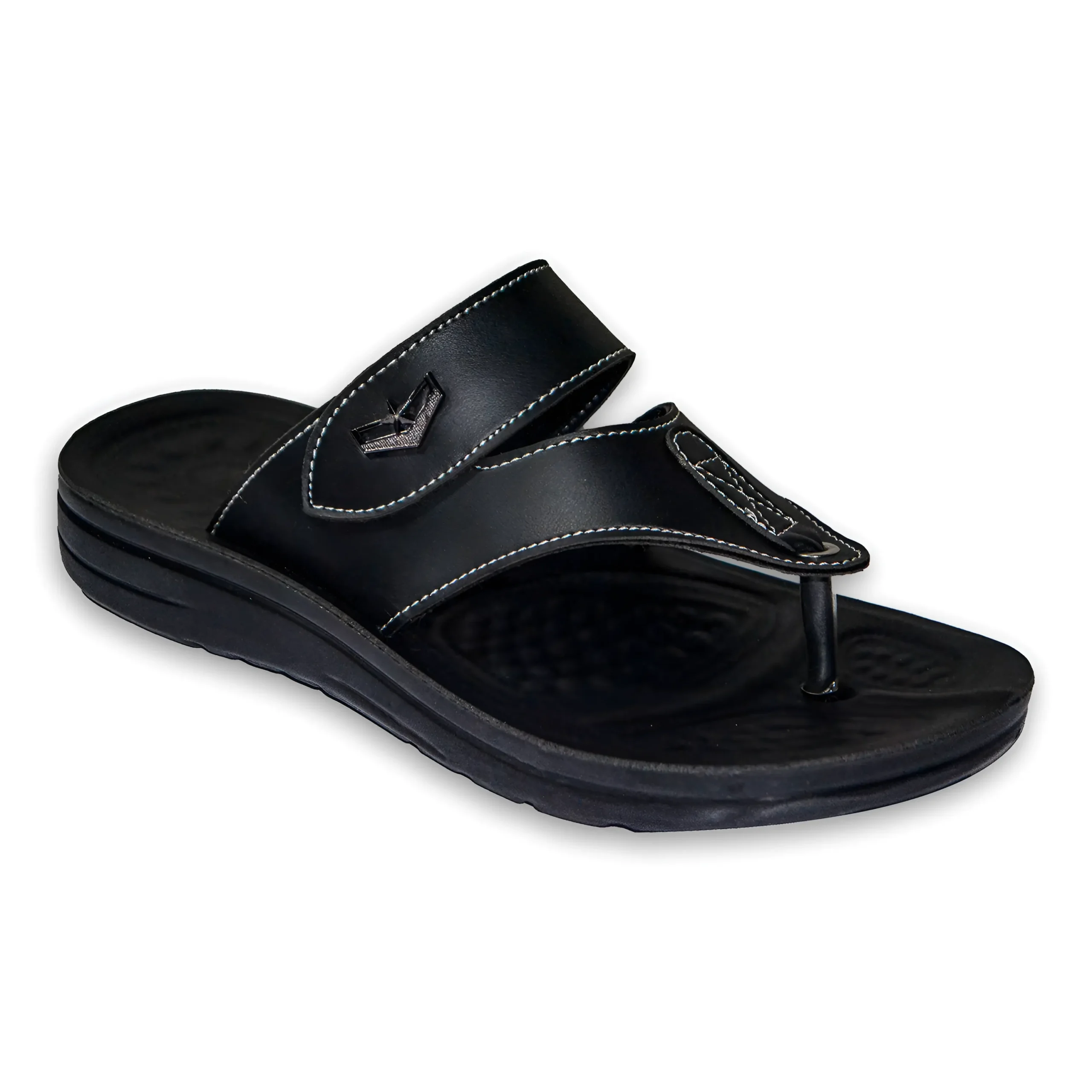 Premium men’s toe-post sandals designed for comfort and style. Crafted with a smooth synthetic upper, contrast stitching, and a cushioned footbed for all-day ease. Durable, lightweight sole provides reliable grip—perfect for everyday casual wear. Available in Black, Brown, and Mustard.