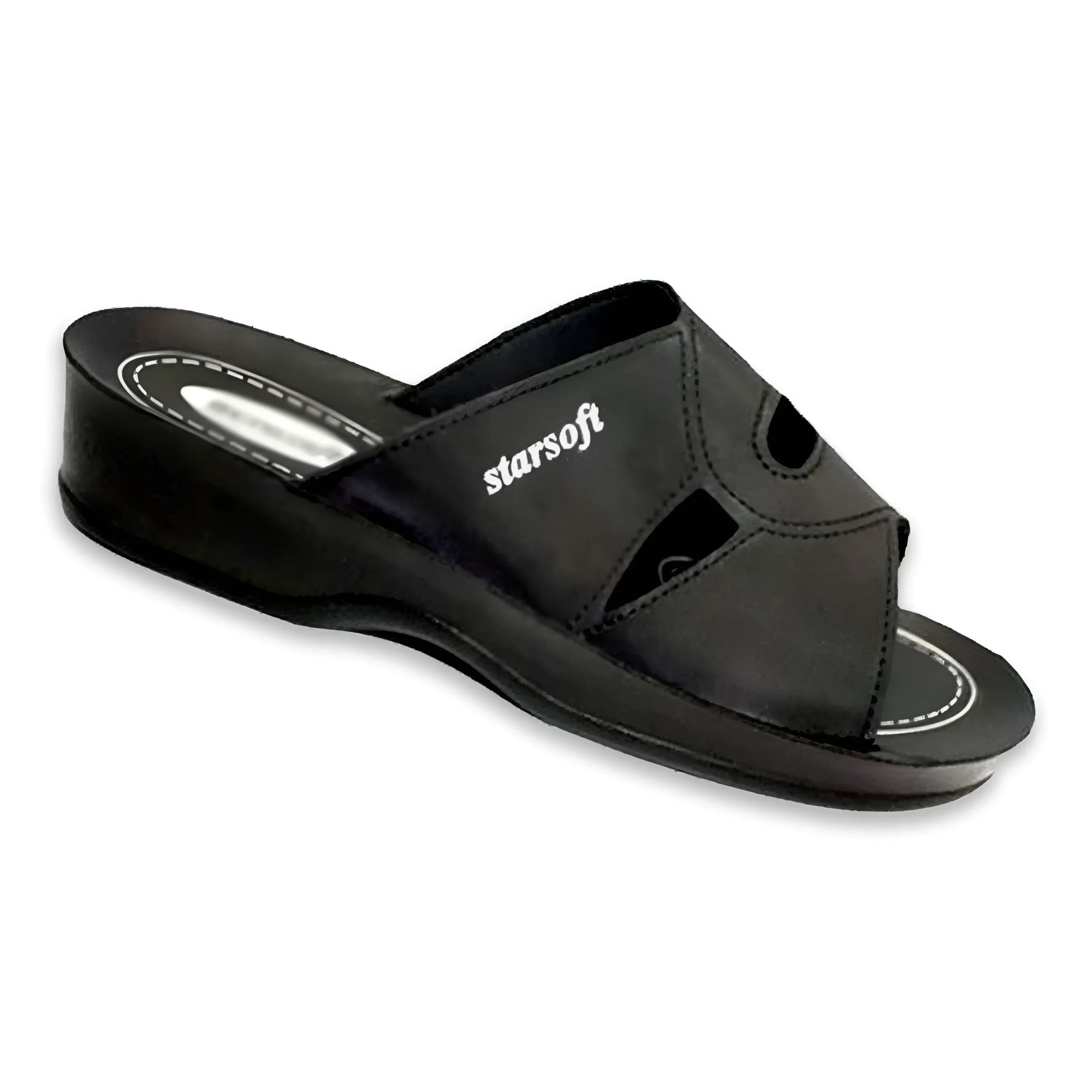 & Free ShippingStylish black ladies slipper featuring a modern cut design with a comfortable wedge sole. Lightweight and soft for everyday wear, offering both elegance and all-day comfort.