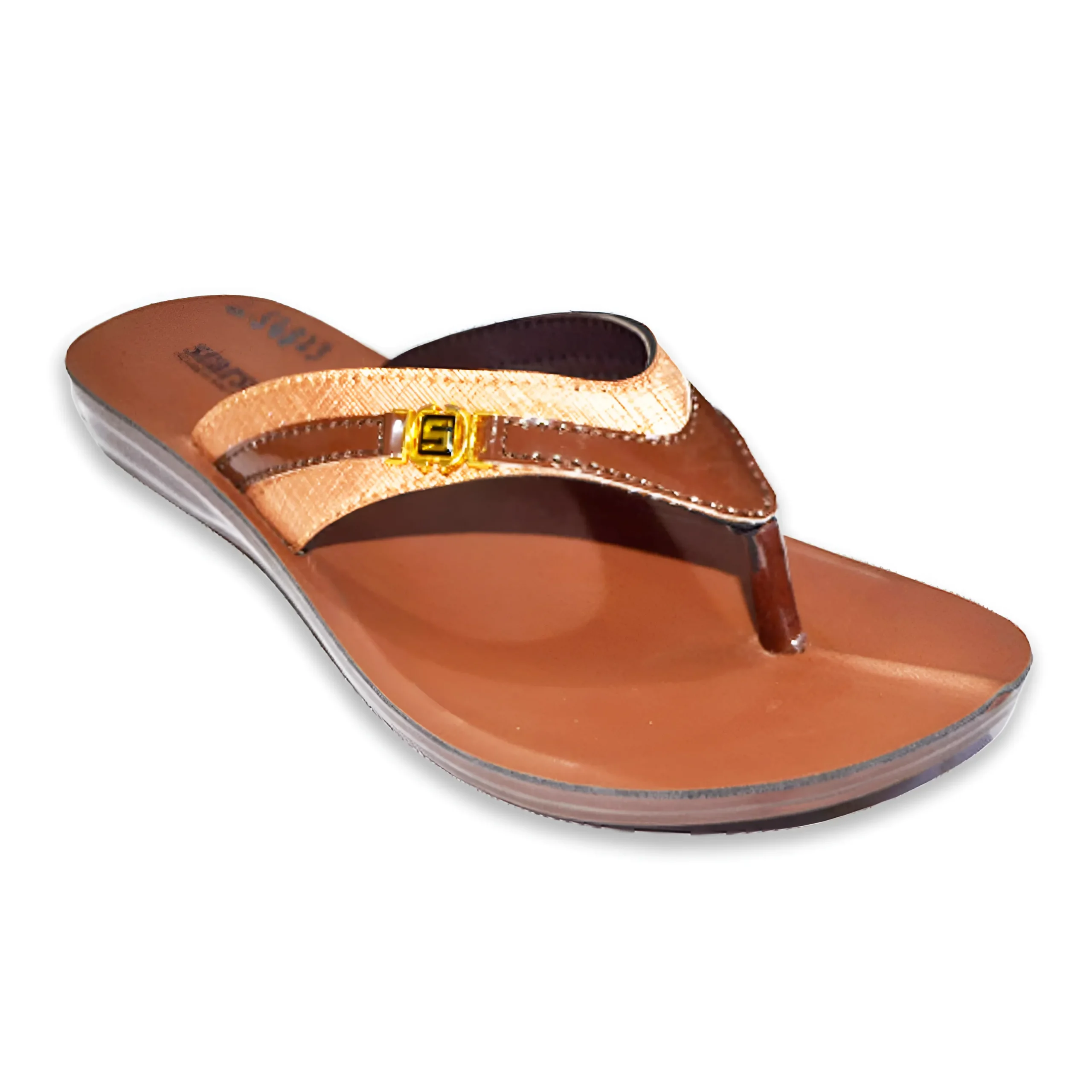 & Free ShippingTrendy brown ladies slipper with a sleek toe-post design and elegant golden strap detail. Soft cushioned footbed and lightweight sole ensure comfort and style for everyday wear.
