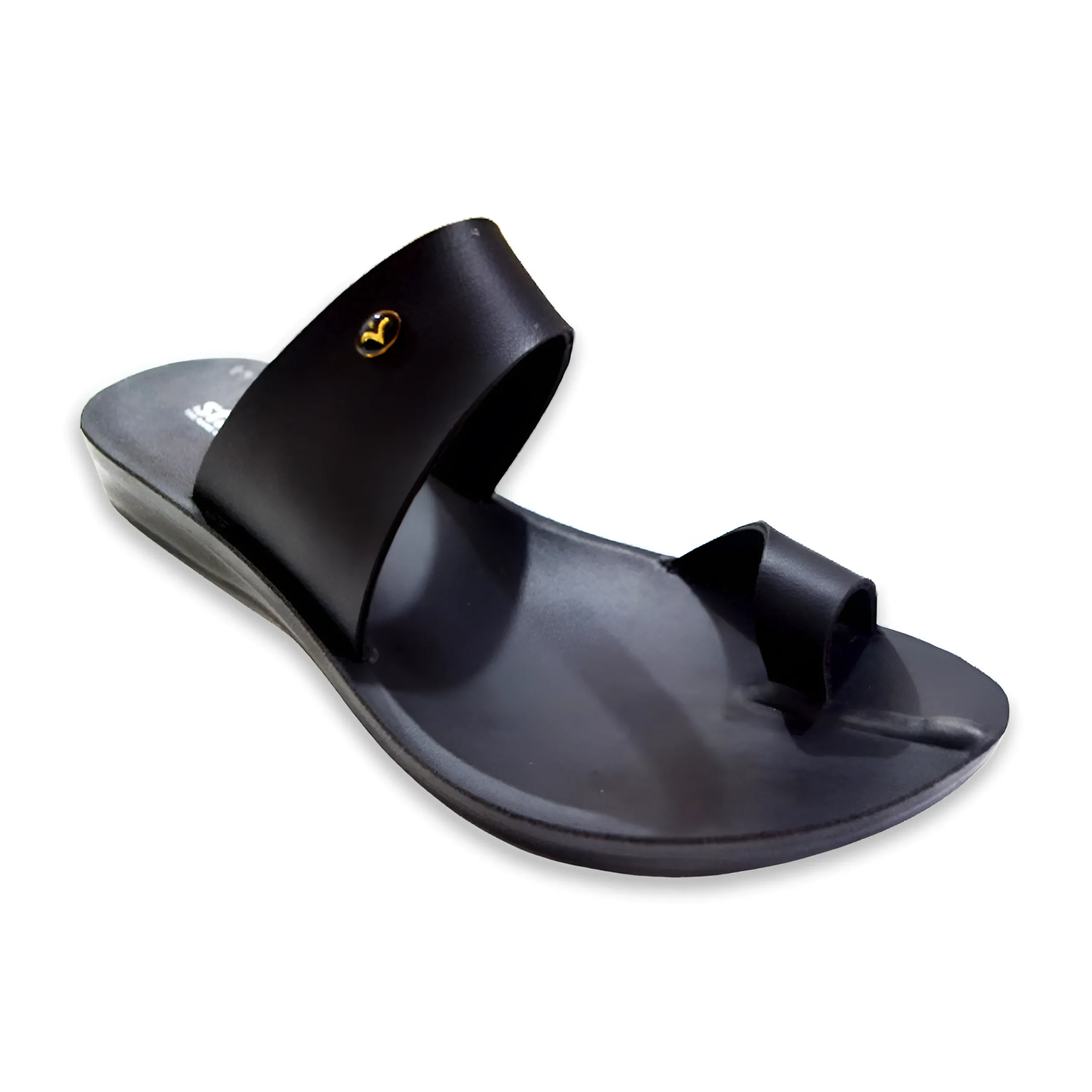 & Free ShippingElegant black ladies slipper featuring a wide front strap with a small gold accent and a toe-ring design for added support. Built with a soft cushioned footbed and lightweight sole, perfect for comfortable everyday wear with a modern stylish look.